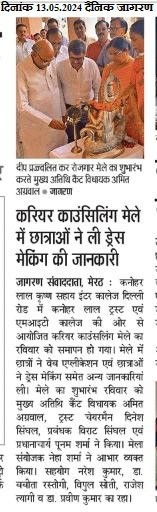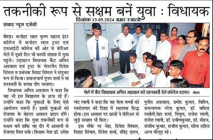 As the first pilot project, MCF along with Kanohar Lal Trust Society & Meerut Institute of Technology successfully organized a “Career Mela” at KK Inter College, Delhi Road, Meerut on 11-12 May 2024 with an aim to provide valuable information to the students about various skills and opportunities. Approx 1200 students of KK Inter College and nearby colleges along with their parents visited the Mela. The first day was inaugurated by Shri Rajendra Agrawal, Hon’ble MP Meerut and many eminent people like Chairman of Cooperative Bank, UP Shri Yashveer Singh were present. On the second day, the Career Mela was inaugurated by Shri Amit Agarwal, MLA Meerut Cantt.